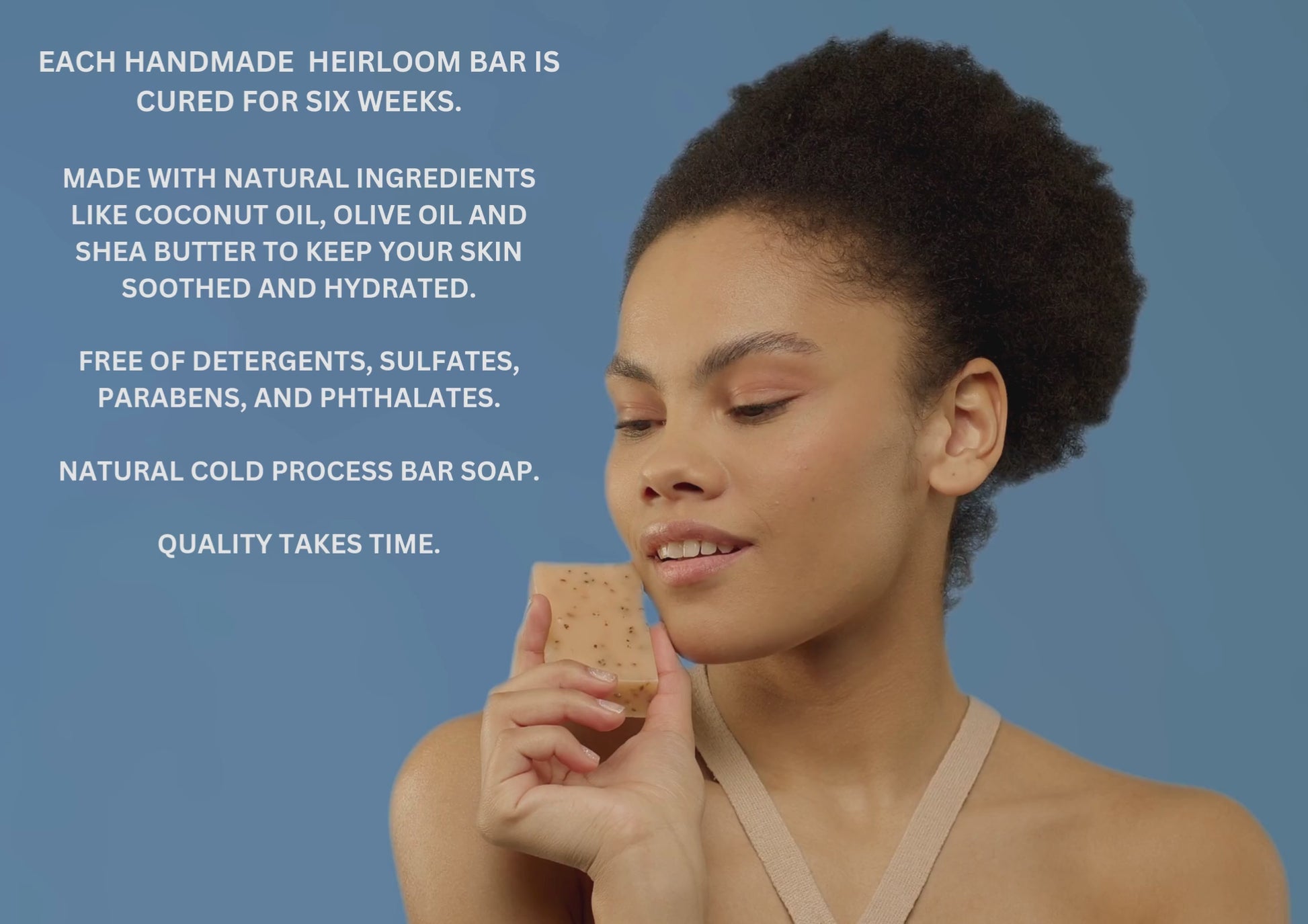 Featured Ingredients: Organic Olive oil, Organic cold-pressed Coconut oil & fair trade, organic shea butter.